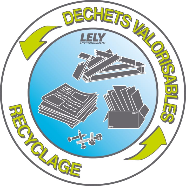 LELY ENVIRONNEMENT installe plusieurs bennes sur votre site en fonction des flux de déchets identifiés avec vous en amont du projet. L’ensemble de vos personnels sur le chantier est en charge de trier les différents matériaux :